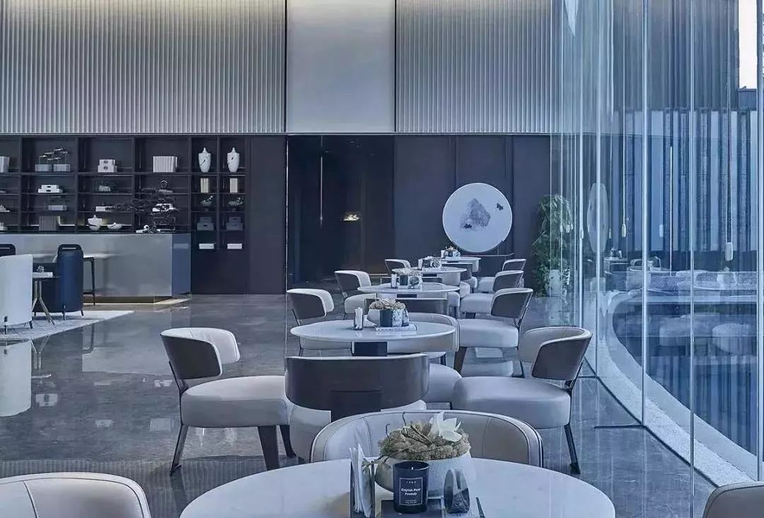 高達(dá)0.26的窗墻比,碾壓了普通公寓0.2的尺度。又用石材、金屬框,以及“大屏”玻璃,營(yíng)造出當(dāng)代東方美學(xué)。