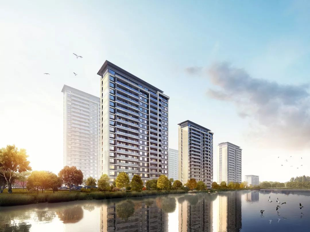 項(xiàng)目考慮到基地原始景觀資源分布不均的情況,為了最大限度的保障居住者的居住價(jià)值,在整體空間營造中,采取了錯(cuò)落式的布局,呼應(yīng)溫瑞塘河景觀。建筑的整體形態(tài)為“東低西高”、“南低北高”,順應(yīng)了河流走向、滿足日照需求。在為園區(qū)注入活力的同時(shí),也讓不同建筑群中的居住者共享溫瑞塘河的氤氳水汽、鳥叫蟲鳴,享受在水一方的優(yōu)雅生活。