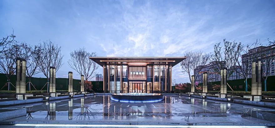 對稱規(guī)整,端莊大氣的示范區(qū),以其挺拔的挑檐凸顯建筑的輕盈舒展,傳承著城市的厚重文化。大面積玻璃幕墻極大的延展視野,打破了室內(nèi)與室外的界限,實現(xiàn)了建筑與景觀的完美融合。
