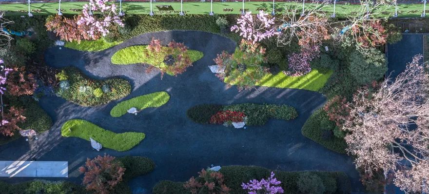 規(guī)劃承東方禮序,沿襲季子文化公園空間結(jié)構(gòu)精髓,以季子品德“德、禮、義、品”進行功能布局,形成“雙軸帶一環(huán)多節(jié)點”的景觀空間布局。尊重城市肌理延續(xù)傳統(tǒng)理念,本案以自然式造景手法為主,平緩起伏的草坡、群落成蔭的樹林、匍匐低矮的灌木叢、點綴的景石、蜿蜒的水體、曲折的步道所構(gòu)成的立體多變的景觀場所,賦予環(huán)境以文化內(nèi)涵和現(xiàn)代功能,體現(xiàn)著東方靜謐的美學意境。