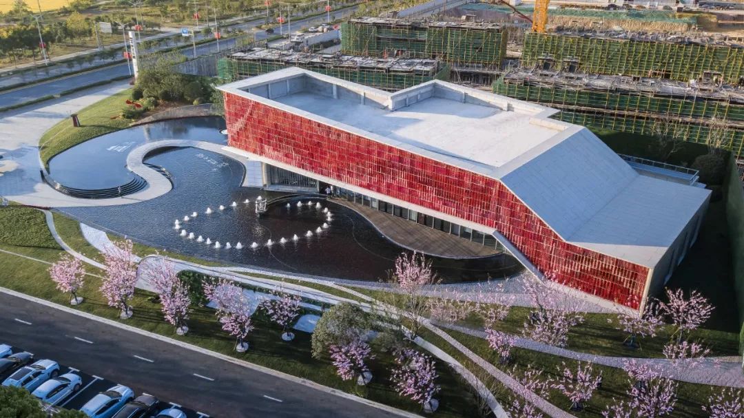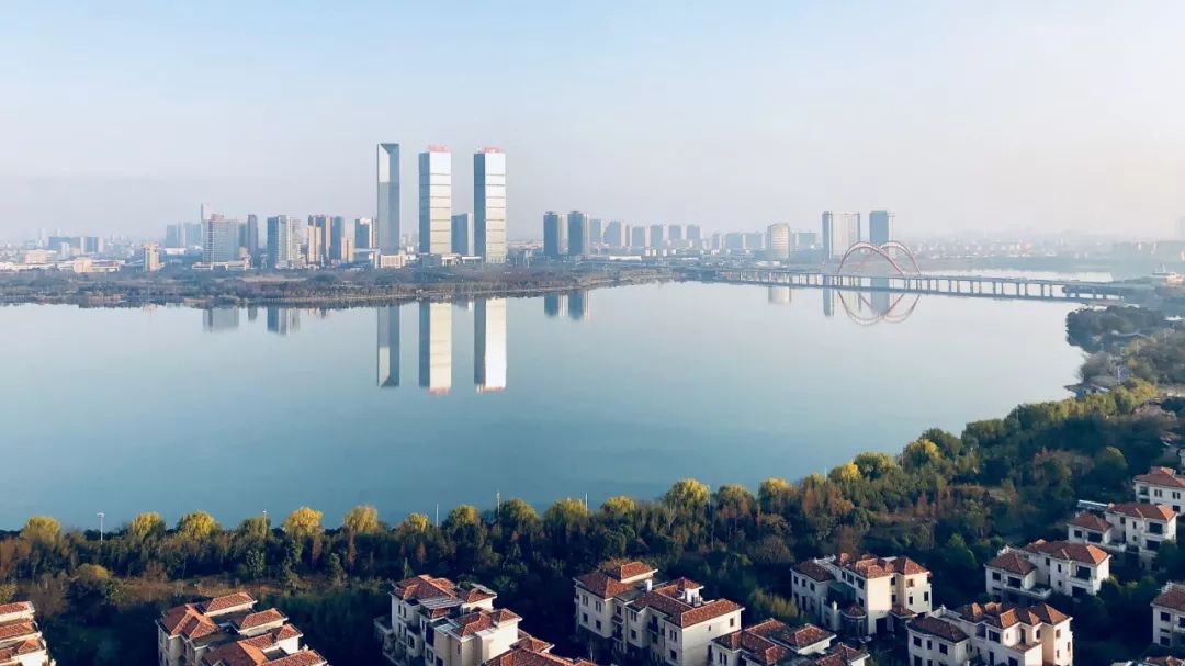 It's the golden autumn season of October, under the clear sky, the reflection of Shiguangtianyue building looks like a carp swimming in the lake. It performs a popular saying, "The carp has leaped through the dragon's gate", which indicates Nanchang's bright future.