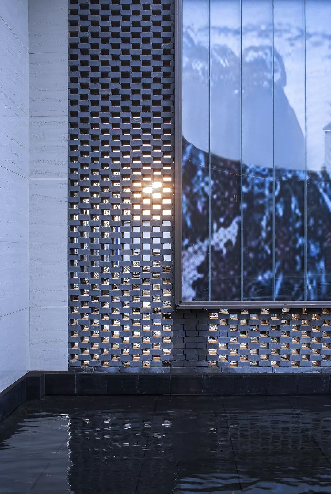 項(xiàng)目的另一亮點(diǎn)即是以磚的漸變排布,加入后場(chǎng)立面的參數(shù)化砌塊幕墻呈現(xiàn)的波浪效果,賦予傳統(tǒng)磚墻絲綢般起伏虛實(shí)的變化,再次點(diǎn)明“絲綢”的主題,泛起人們心中對(duì)品質(zhì)生活向往的漣漪。