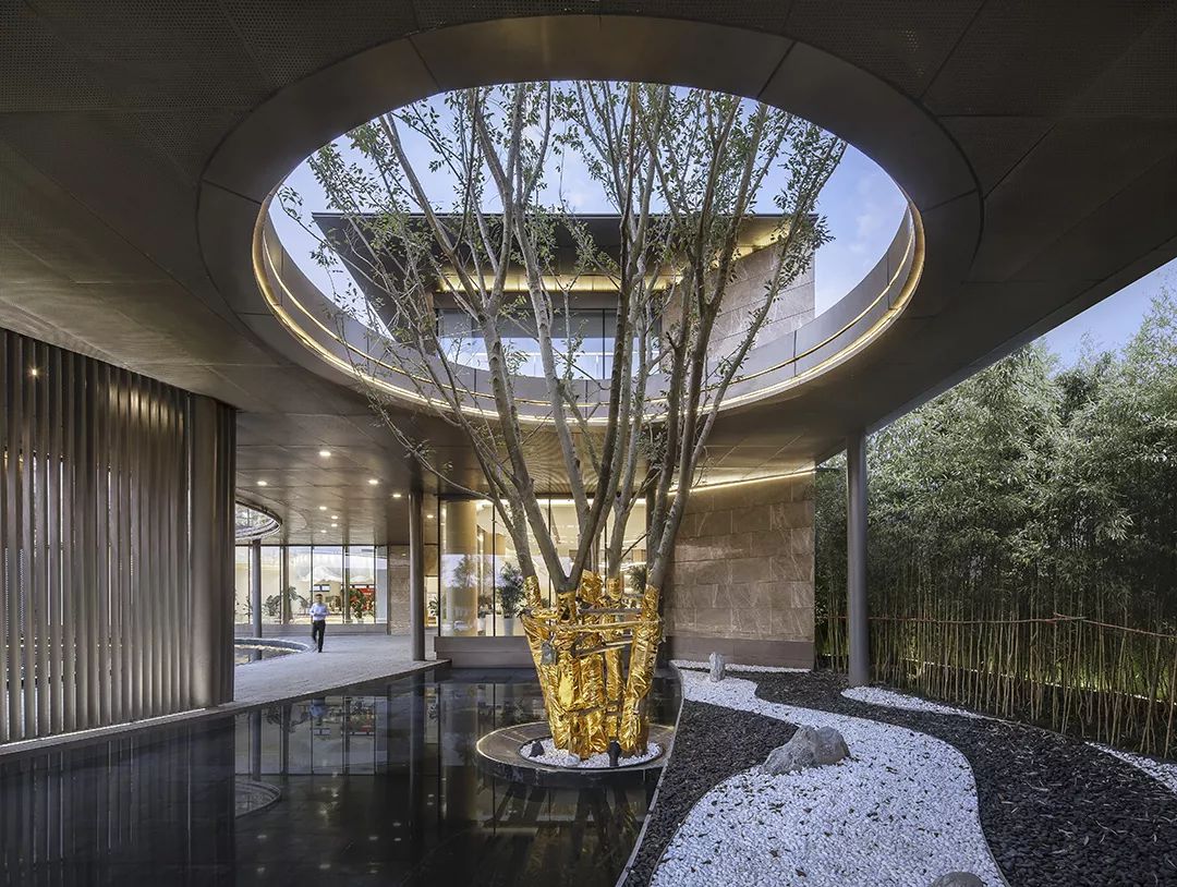 由于絲綢的透光性,絲織品被稱為游戲光束的藝術(shù)品。本案以光為材料,將“絲綢”的“透”從抽象的概念中轉(zhuǎn)化為靈動(dòng)的建筑空間,配合充足的自然采光,將樹(shù)蔭下光影斑駁的日常加以重塑,打造了干練的景觀導(dǎo)入視覺(jué)效果,打造出兼顧藝術(shù)性、文化性與體驗(yàn)性的奇異空間。