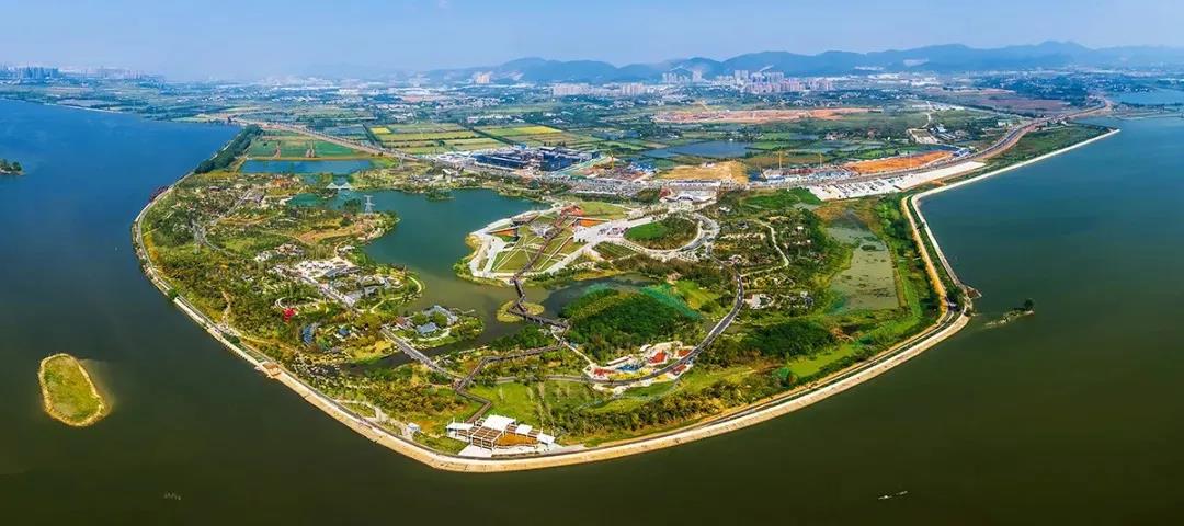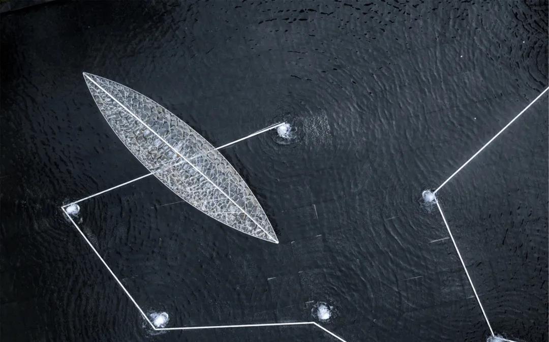 石材與水面相接,景觀連廊夾帶一絲禪意,成為山水畫卷中的畫框。人在畫中,靜賞水上雕塑,船泊樹島。
