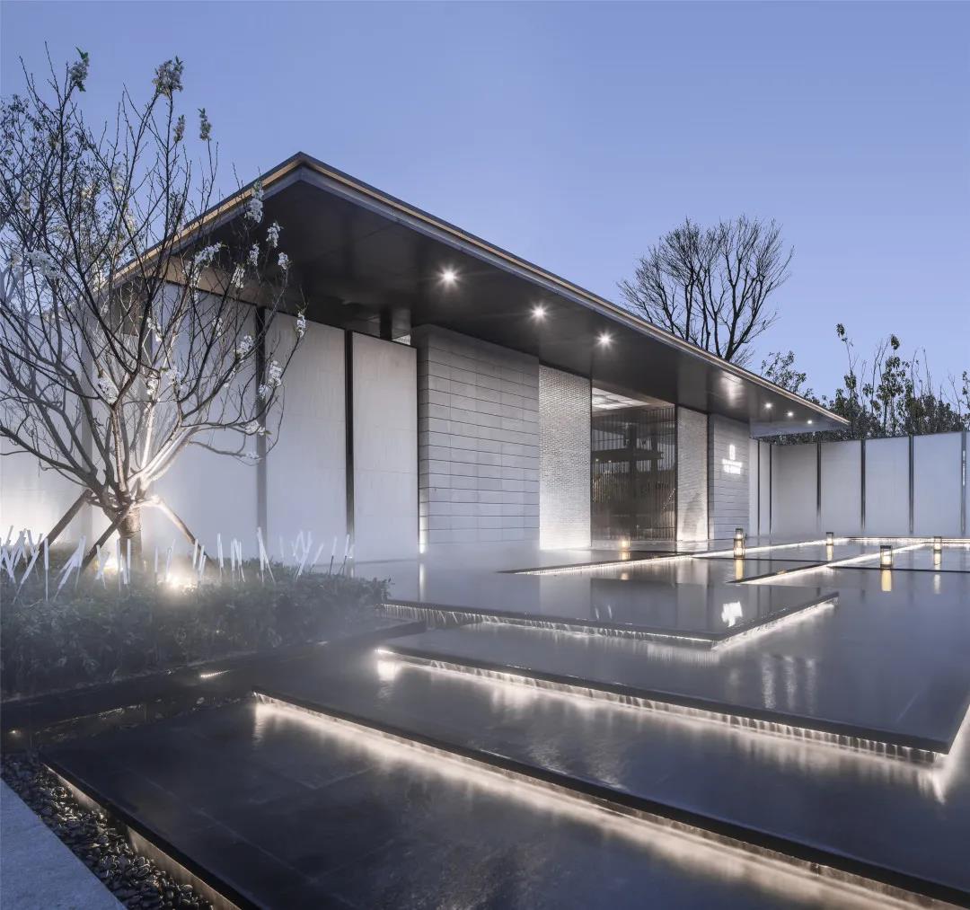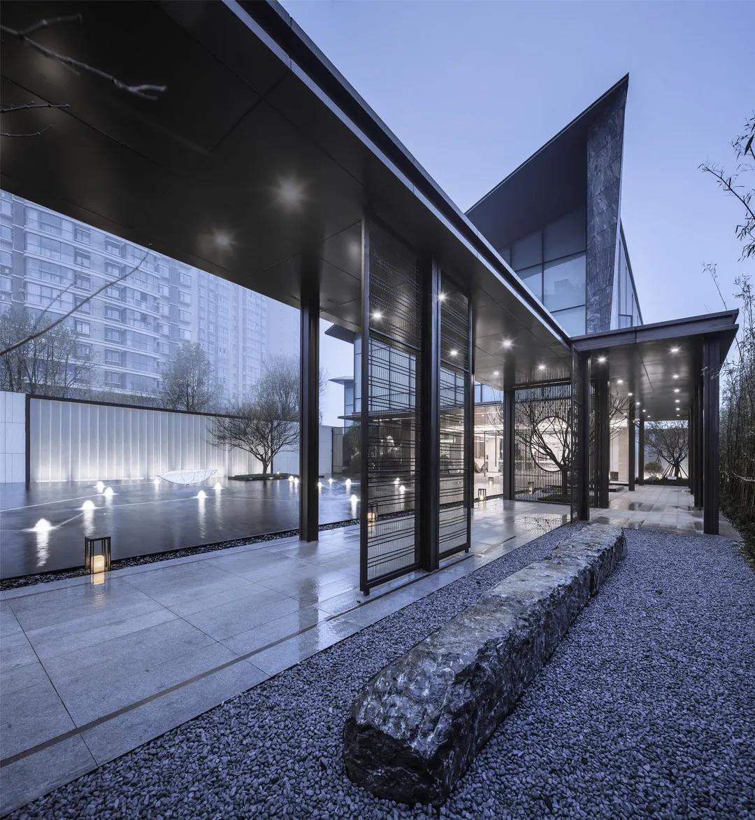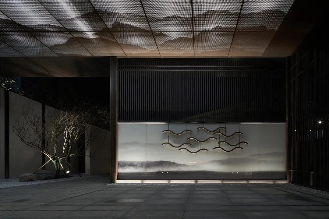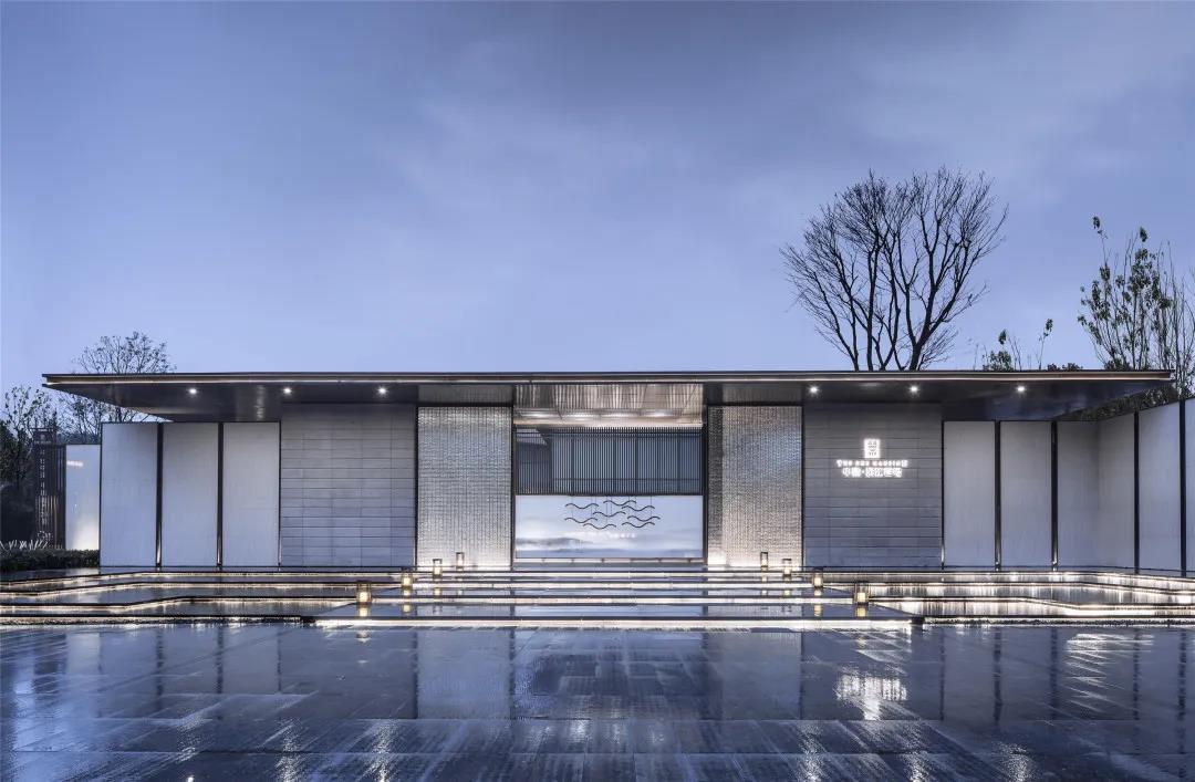 在示范區(qū)大門處,設計以天然去雕飾的態(tài)度,落化成淡然留白的精神門戶,掩映其后的景致。