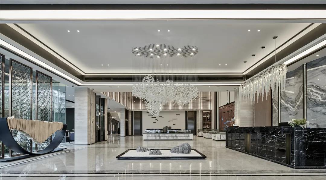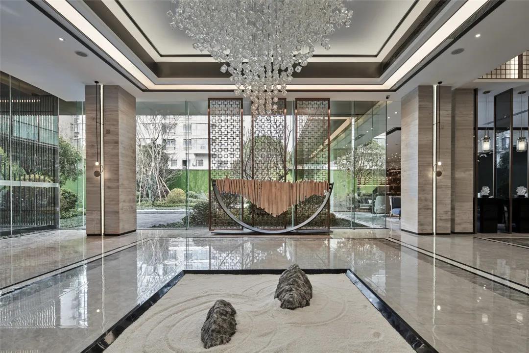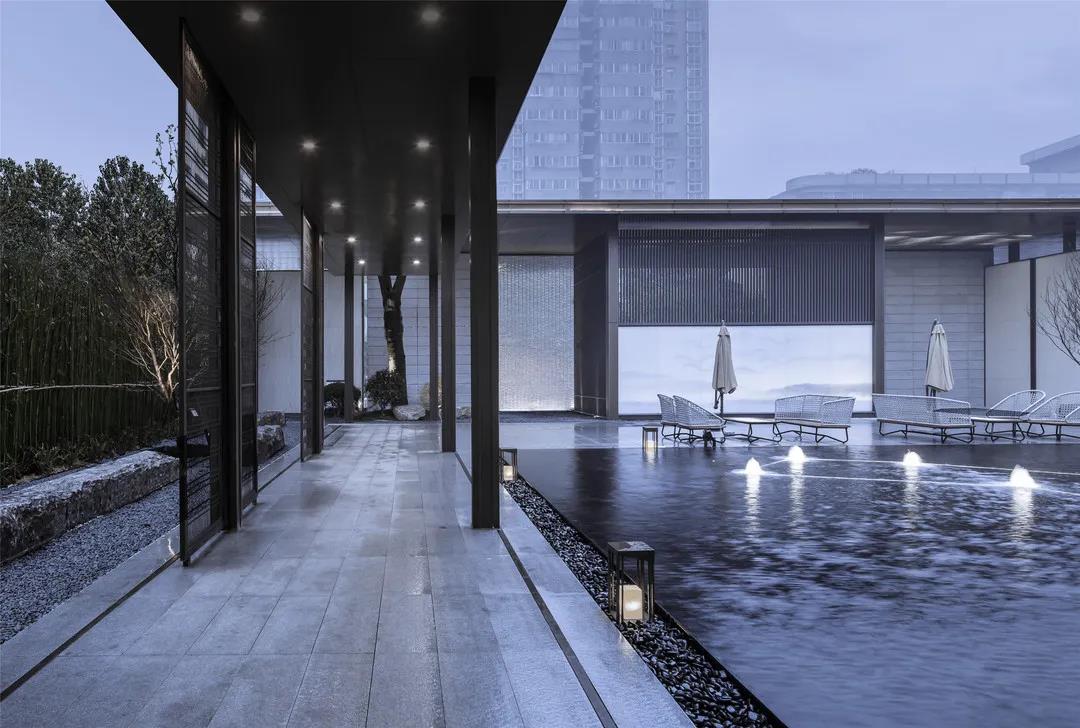 項目布局上,設計因地取勢,隨物賦形,為江畔留下一抹優(yōu)美的城市天際線。就江景之利,設計強調(diào)帶有中華意蘊的山水景觀,擬南宋詩詞之意,攜山水空間之境,寫意出山、水、書、畫的四重體驗;以界面營造宜人的空間層次,植物的選擇與城市色彩相協(xié)調(diào)。洗凈鉛華,淡麗清雅。