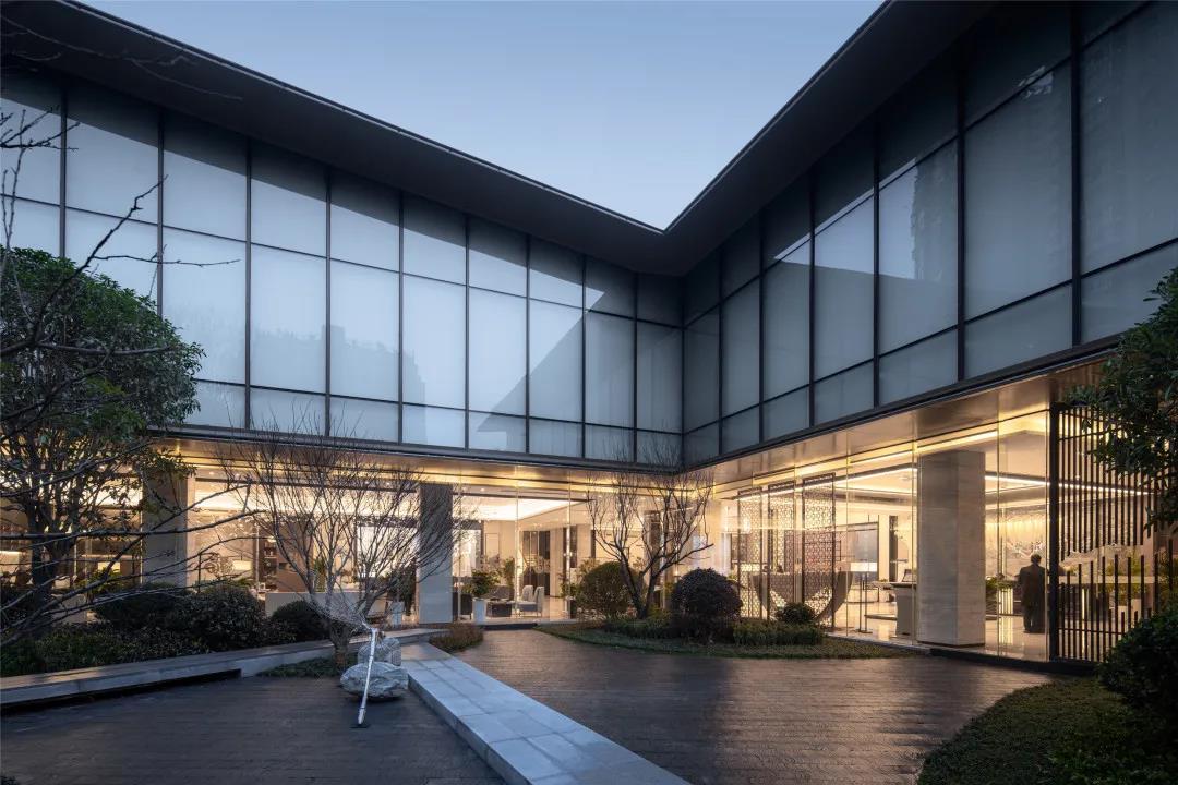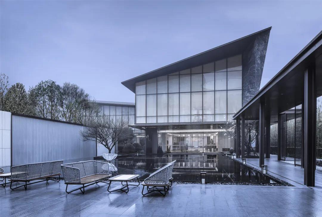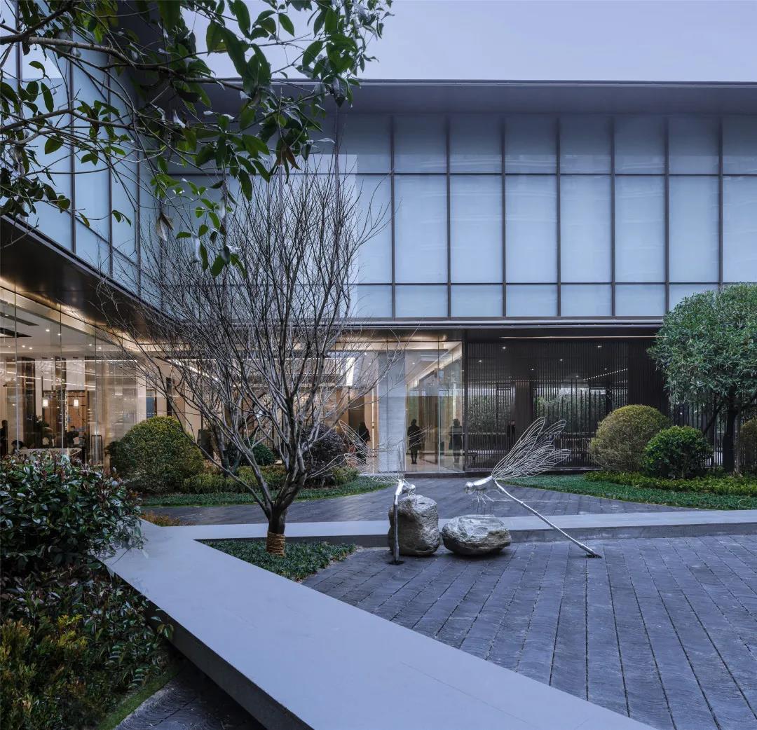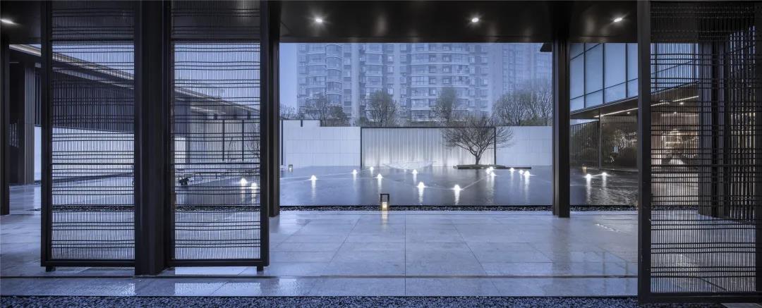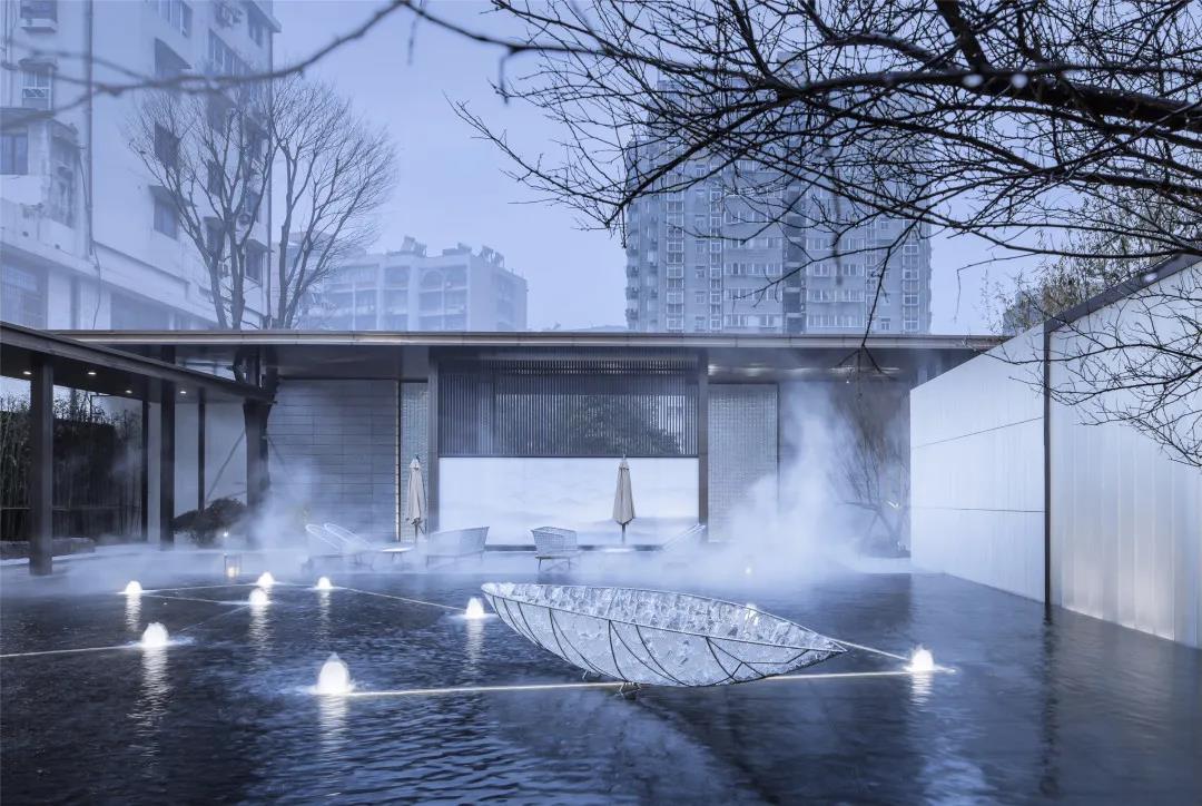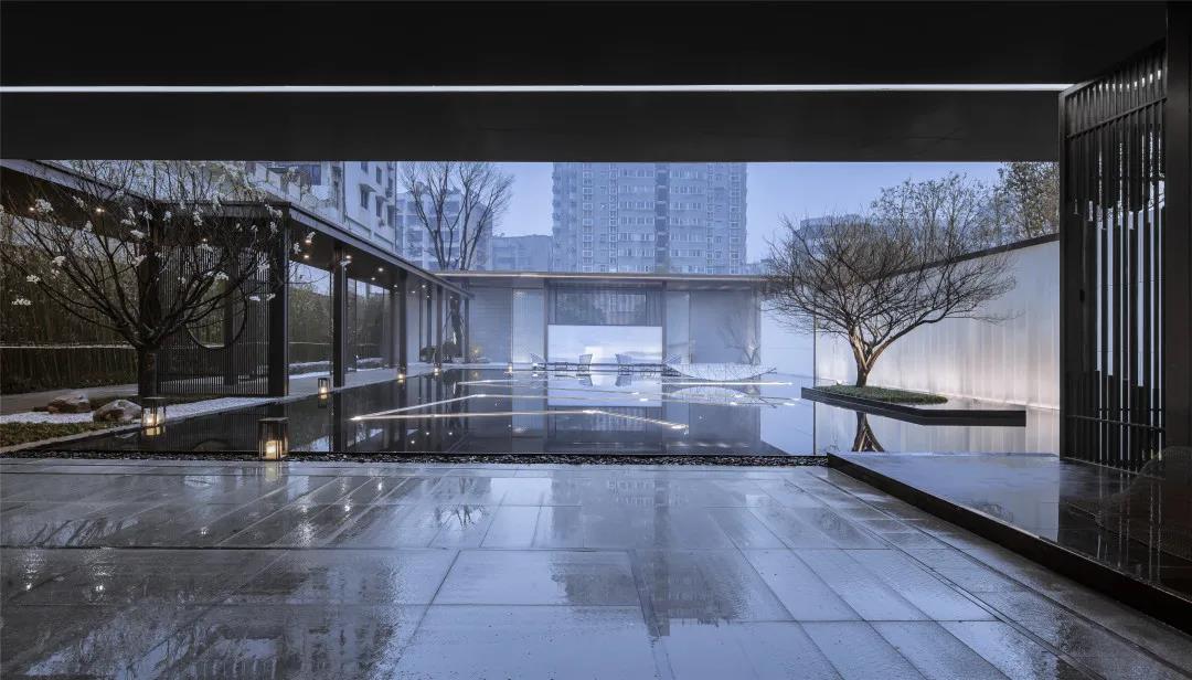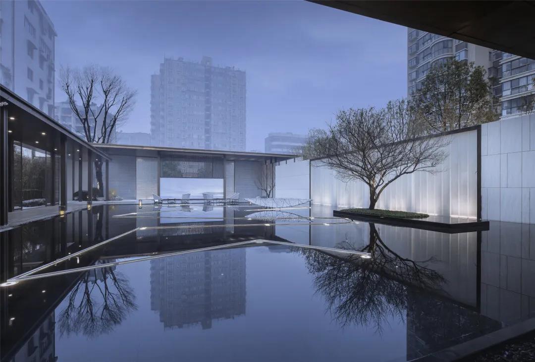 設計在水院華庭之中,規(guī)劃一顆樹植,浮于鏡上,盈于紙面。水天一色,在山石棱角之下,生出一番空靈意蘊。