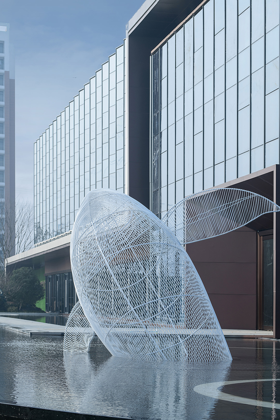 景觀延續(xù)了建筑風(fēng)格,尋水之“源”,從中提取元素并進(jìn)行重構(gòu),摒棄了繁雜的裝飾,以簡潔現(xiàn)代的風(fēng)格延續(xù)了景觀的流動。