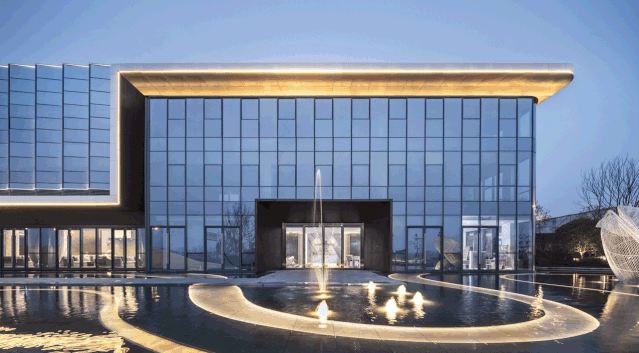 同時,項(xiàng)目秉承"少即是多”的設(shè)計準(zhǔn)則,主張建筑、景觀、室內(nèi)一體化。將設(shè)計元素融入多重空間,相融共生。洽談區(qū)大面積的玻璃帷幕通透清朗,以水為境,寧靜的水面折射出一派輕盈靈動之景,以水倒映虛實(shí),互為對景,積極尋找城市與空間的互融互動。