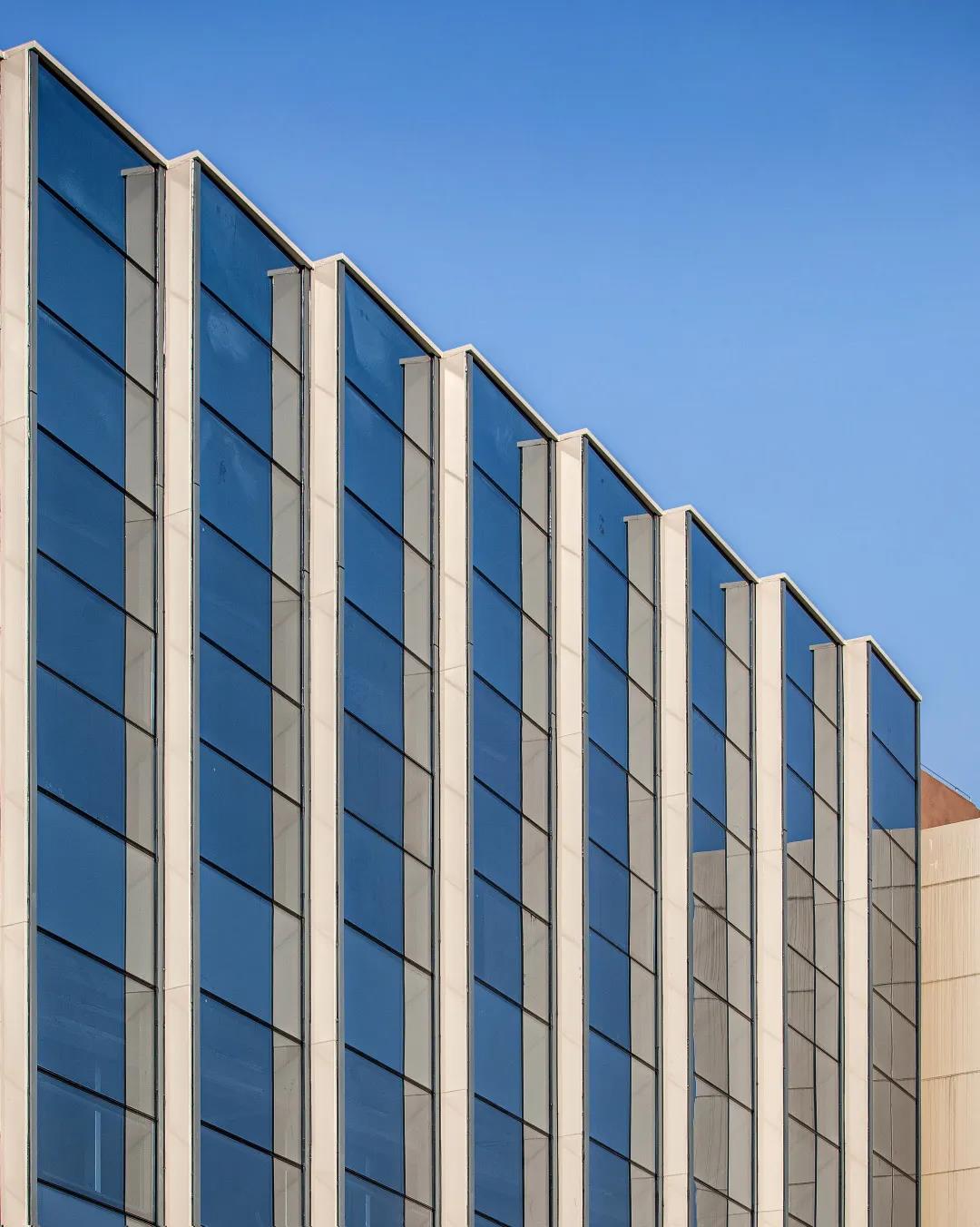 通過提取文化元素并重新詮釋,來實(shí)現(xiàn)合肥的文化淵源與場地邏輯上的內(nèi)在關(guān)聯(lián)性。細(xì)膩、素雅慢節(jié)奏的生活方式,作為合肥的城市特色之一,成為建筑語言表達(dá)出合肥獨(dú)特的人文氣質(zhì)。延續(xù)徽派建筑的層疊有序,建筑表皮肌理以比例分割,融入折形玻璃幕墻,立體裁剪,通過圖形的疊加轉(zhuǎn)變,形成高低錯落的視覺效果。