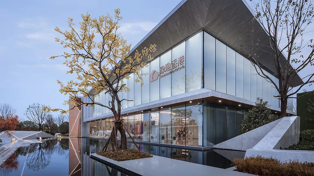 項目設(shè)計,崇尚開敞自由、情景輝映、色彩淡雅、形體輕盈的格調(diào)。示范區(qū)的設(shè)計汲取長江地域文化的傳承和精神,建筑造型如同一座江邊的碼頭,其整體采用矩形作為基本模塊,進行從體塊確立到軸線劃分、到扣合主題、最后到相互融合后細分處理的演繹,形成視覺上的虛實變化,穿插入象征船型的楔形形體,將碼頭的概念植入環(huán)境意境。