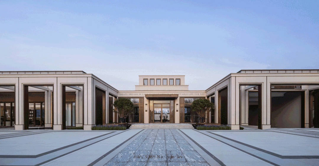 悅湖公館的造型,整體采用了簡潔而優(yōu)雅的新古典主義的風格,無論是大區(qū)的住宅樓棟,還是示范區(qū)及社區(qū)形象入口的形式,都用現代建筑的語言將新古典的肌理鐫刻進了建筑的本體。