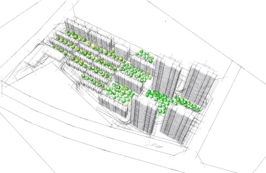 幼兒園位于基地西南側(cè),成規(guī)整L型布局,利用不規(guī)則地形作為活動(dòng)場(chǎng)地,形成陽(yáng)光戶外場(chǎng)所。社區(qū)人車分流,環(huán)路貫通。車行于入口處直接進(jìn)入地庫(kù),最大限度減少對(duì)社區(qū)環(huán)境的干擾。