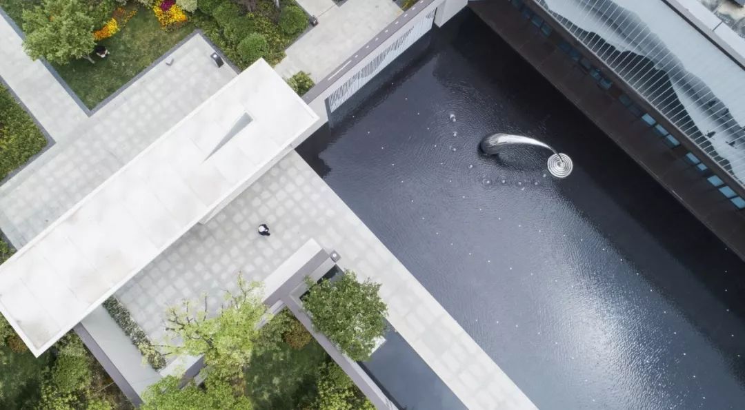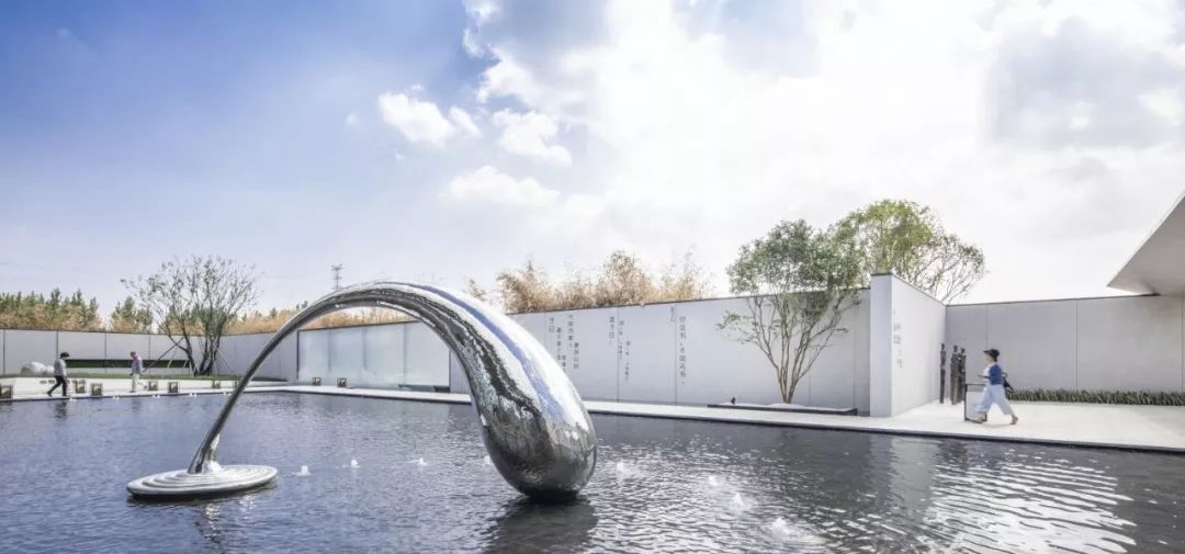 折線型的入口空間不僅流動(dòng)性更強(qiáng),半封閉的空間更具有開放性和引導(dǎo)性,極具昭示性的精神堡壘、景墻、涌泉,引人入勝。