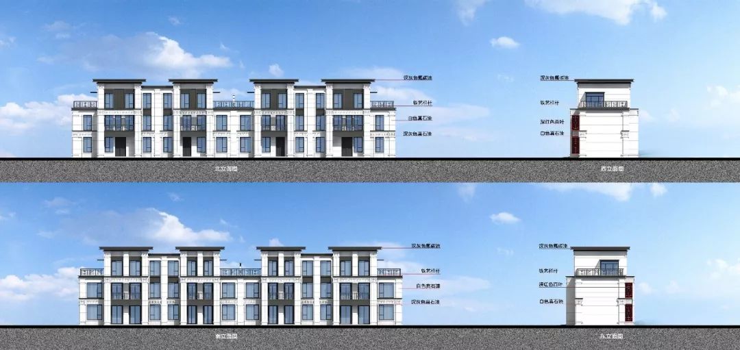 立面處理強(qiáng)調(diào)細(xì)節(jié)、主體層次和線腳細(xì)部處理;窗的做法講究開放性和藝術(shù)性,在充分考慮節(jié)能的基礎(chǔ)上,適度的擴(kuò)大窗的面積,以打通內(nèi)與外的視覺界限,擴(kuò)大視野范圍,望景觀瀾,使風(fēng)景成為室內(nèi)空間的外延。