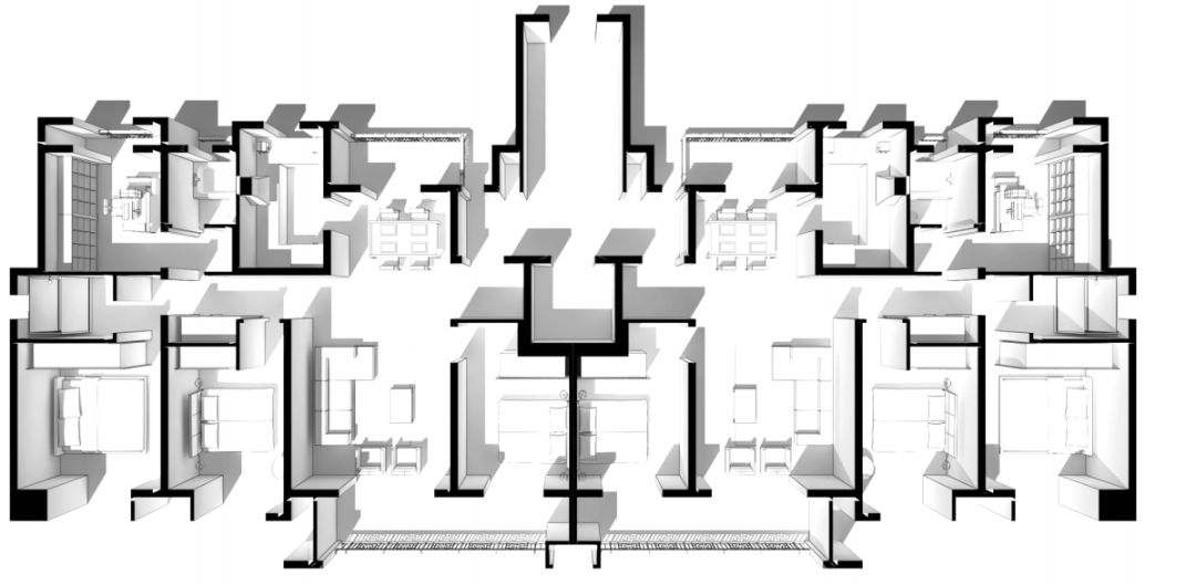 高層利用東部完整區(qū)域4幢獨(dú)立成區(qū),既遠(yuǎn)眺西側(cè)運(yùn)河公園,又能形成寬大的中心景觀。洋房于基地西北側(cè)和中部L型布局,聯(lián)排別墅獨(dú)立成組布置于西側(cè),近距離享受運(yùn)河景觀,同時(shí)享有私密庭院。
