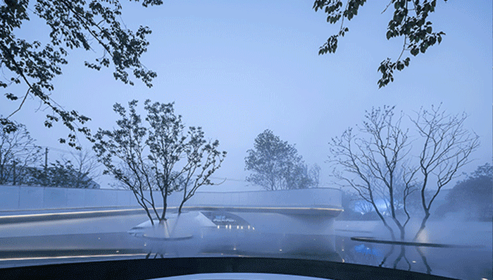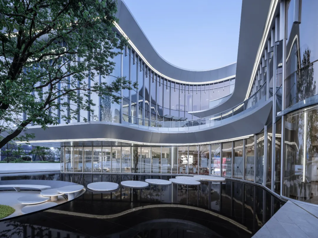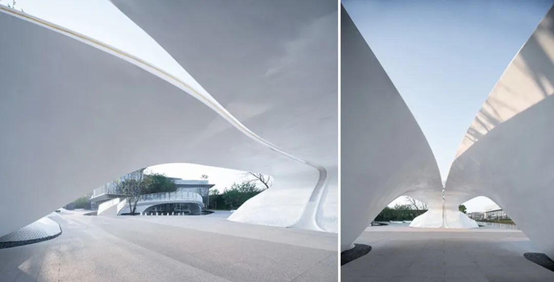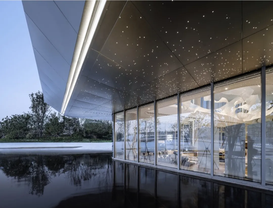 東望府生活美學(xué)館,用藝術(shù)化的建筑語言,結(jié)合高科技的現(xiàn)代材料,以靈動(dòng)的造型形態(tài)、充滿魅力的光影變幻,實(shí)現(xiàn)了充滿想象力的時(shí)空穿越體驗(yàn),為高科技園區(qū)基地帶來新的集聚角落,打卡空間。