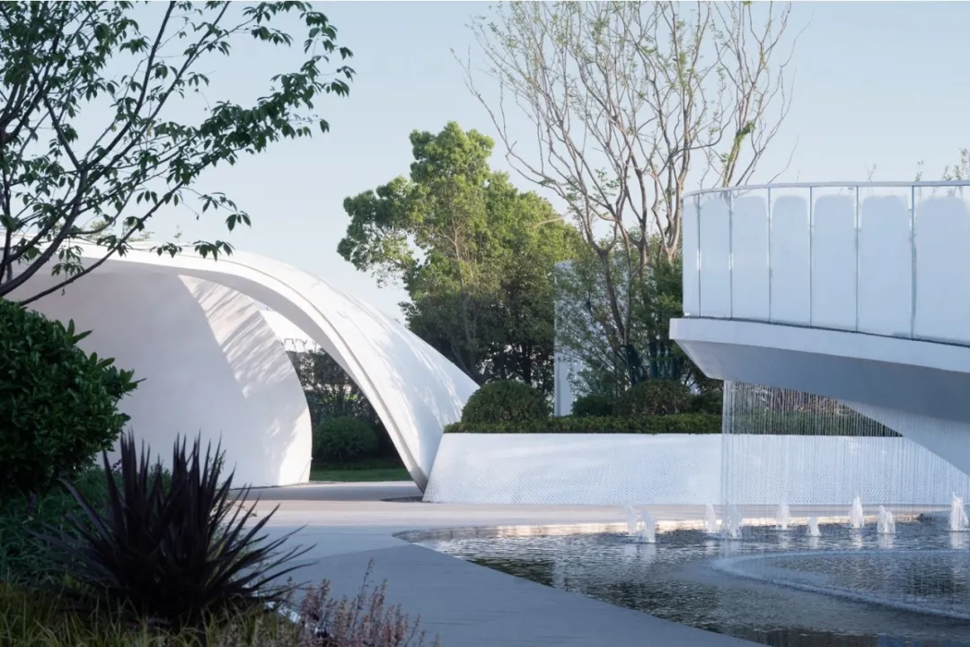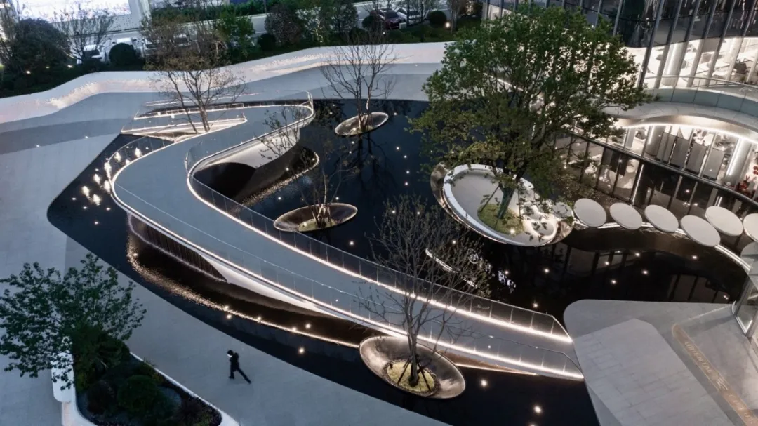 映入眼簾的是疊級大水景,倒映在星湖當(dāng)中,打造強(qiáng)烈的視覺沖擊,增強(qiáng)場地記憶點(diǎn),提升體驗(yàn)感。